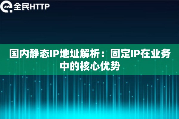 国内静态IP地址解析和固定IP在业务里的优势很明显,能提升稳定性、安全性和效率。通过代理IP服务,比如全民HTTP,企业可以轻松享受到这些好处,不用自己折腾IP资源。如果你有业务需求,不妨试试他们的产品,挺靠谱的。