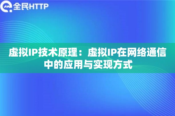 在代理IP领域,虚拟IP技术的应用就更广泛了。比如我们全民HTTP提供的服务,就是基于这种原理,让用户能够灵活切换IP身份,既保护了真实地址,又实现了网络请求的多样化。
