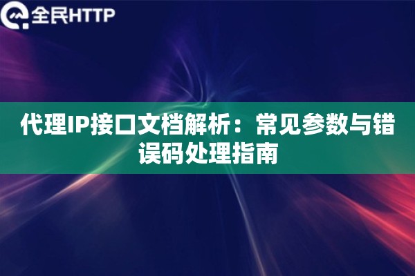 搞技术开发的兄弟们都知道,接口文档这玩意儿就像地图,没它容易走丢。尤其是代理IP这行当,参数没整明白,错误码看不懂,那真是两眼一抹黑,抓瞎。全民HTTP的接口文档做得挺地道,把常见参数和错误码给你掰扯得明明白白,让你用起来不犯怵。