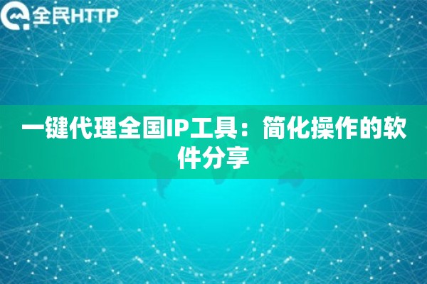 一键代理全国IP工具到底有多省心