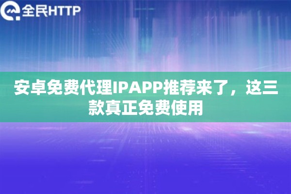 安卓免费代理IPAPP推荐来了,这三款真正免费使用