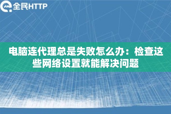 电脑连代理总是失败怎么办?这个问题让不少朋友挠头。其实多数情况下,问题出在网络设置上,只要耐心检查几个关键点,十有八九能自己搞定。今天咱们就从代理ip的角度,聊聊怎么把这些烦人的连接问题给捋顺了。